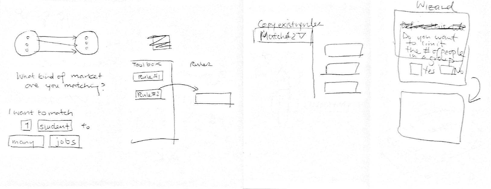 MatchKit’s product direction shifted frequently as we iterated. Each cycle started with scrappy sketches, moved into wireframes, and culminated in UI prototypes informed by user interviews, competitive analysis, and pricing research.